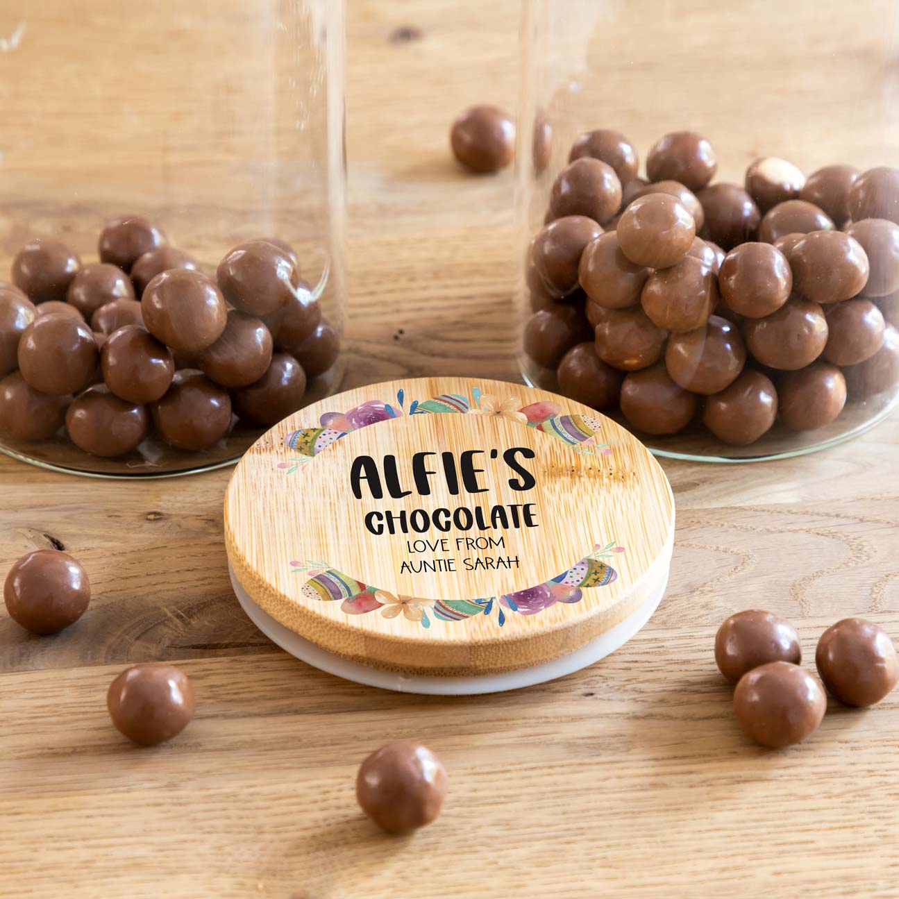 A personalised Easter treats jar is the perfect Easter gift for sweetie and chocolate fans, fill it with their favourite Easter sweets and treats.