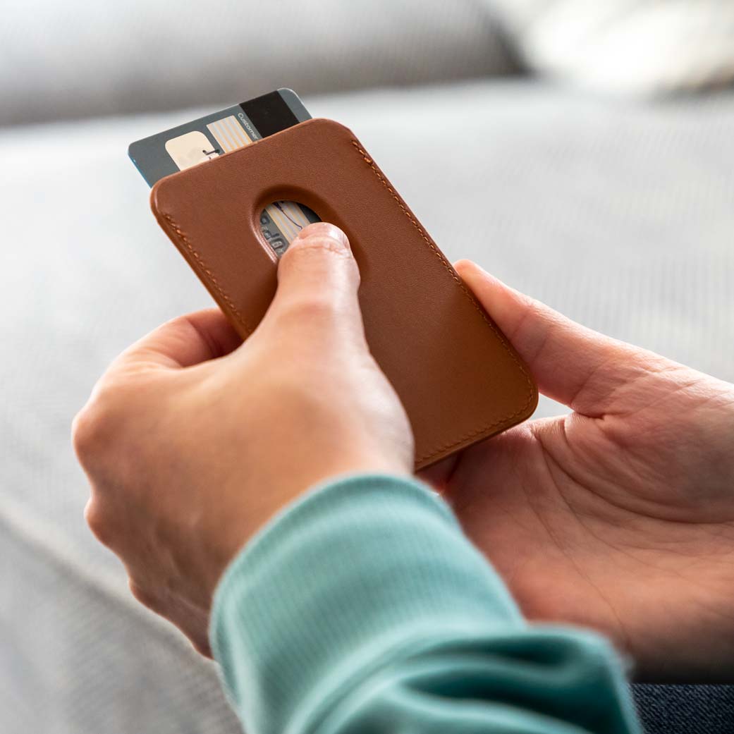 To fit the MagSafe wallet, simply place it onto the back of your compatible iPhone and the wallet will snap into place. If you use a case for your iPhone, it needs to be MagSafe compatible to use with this wallet. The wallet can hold up to 2 bank cards.