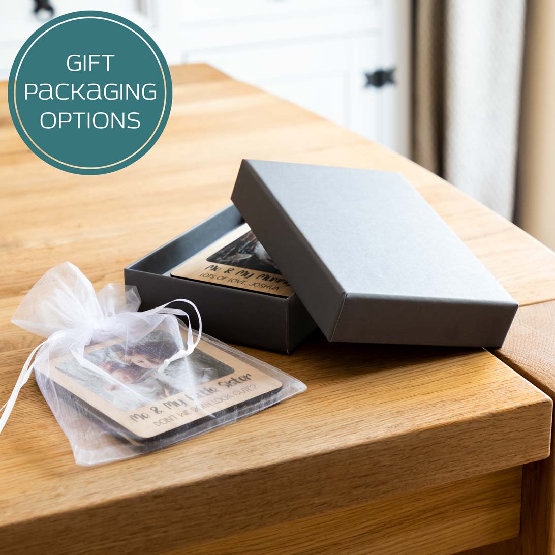 This wooden photo magnet is printed with your own photo and then your personalised text, making a truly unique letterbox gift. The design is printed directly onto the wood in full colour, for a high quality, durable finish.